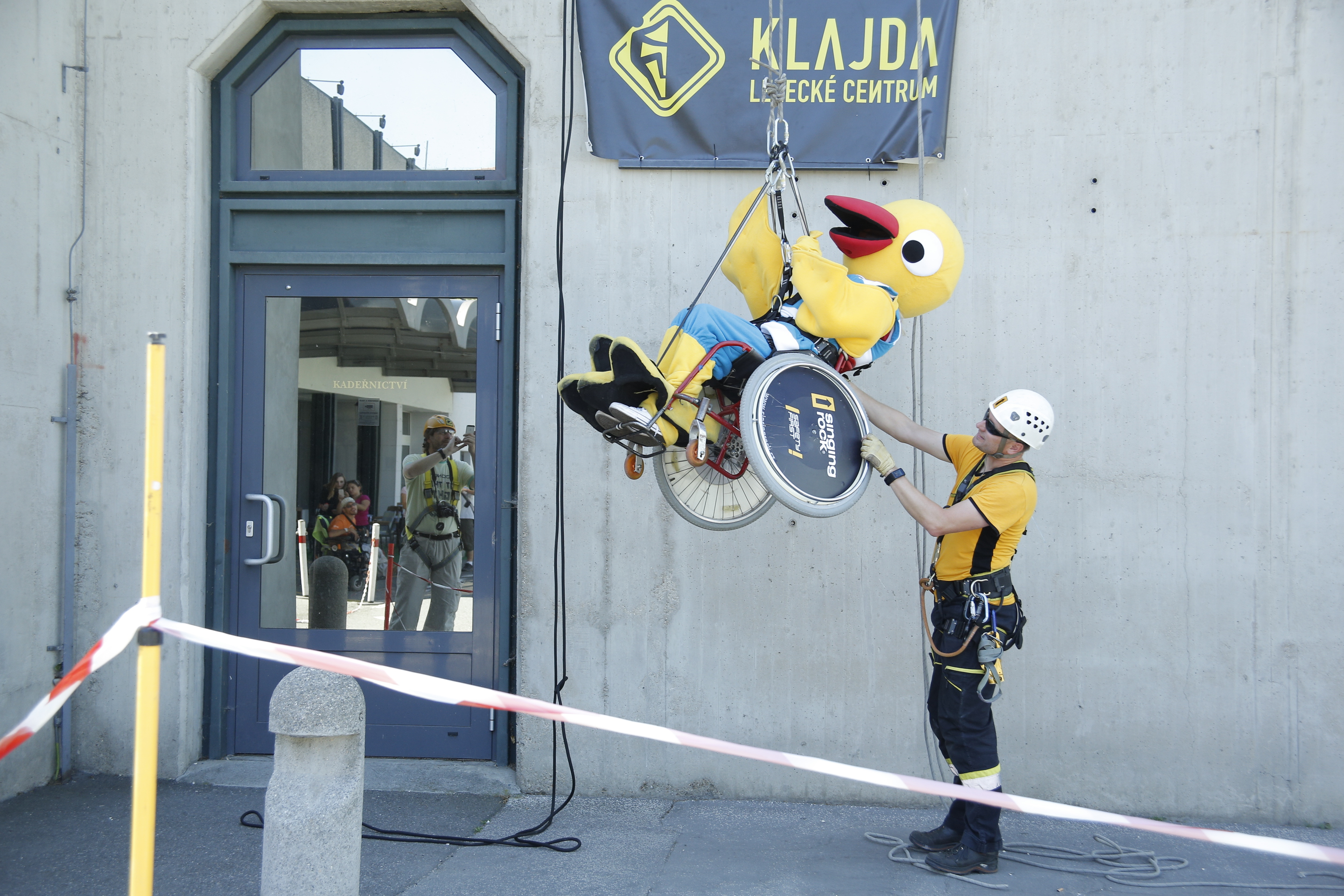 Out-of-the-box activities today offered a very unusual spectacle in the form of wheelchair rope down. Not only the disabled daredevils had the opportunity to sit in the wheelchair, get tied up with ropes, and use the experienced professionals from climbing center Klajda to jump from the roof of the Voroněž's 30-meter building.